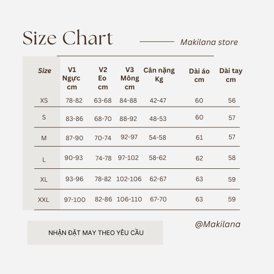 Đầy đủ size từ XS đến XXL, phù hợp nhiều vóc dáng.