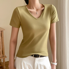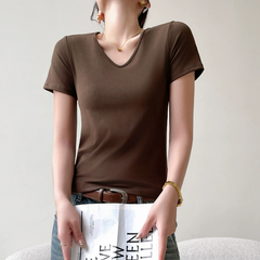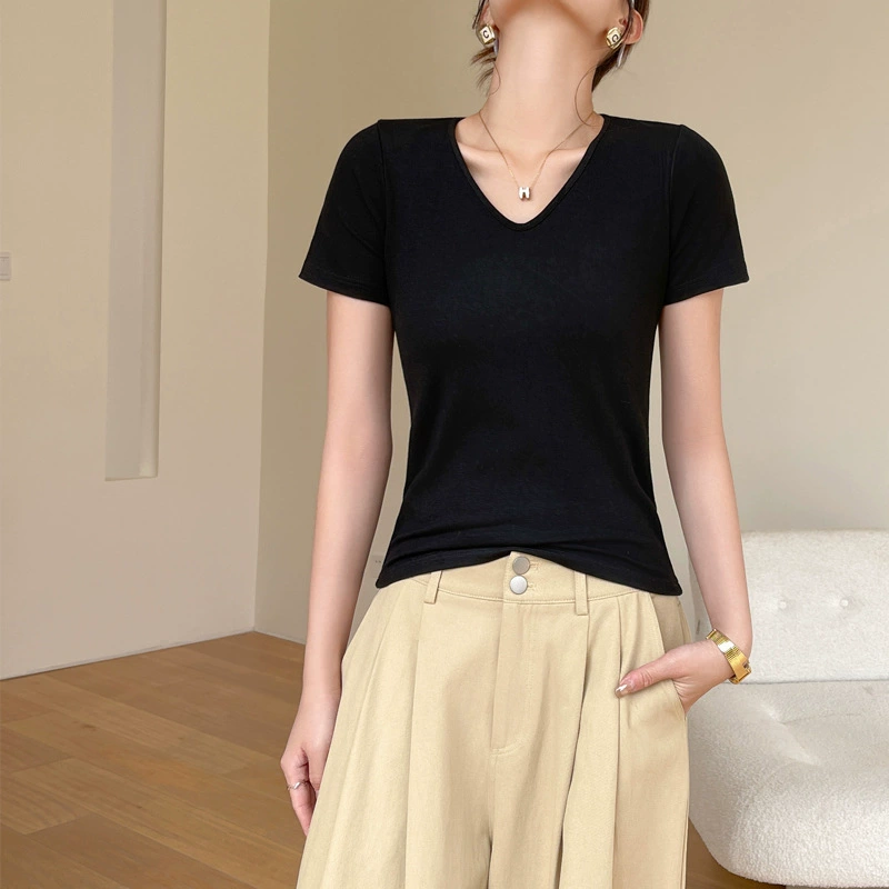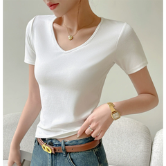 Kiểu dáng: Cổ tròn, tay ngắn, áo chui đầu, ôm vừa vặn.
