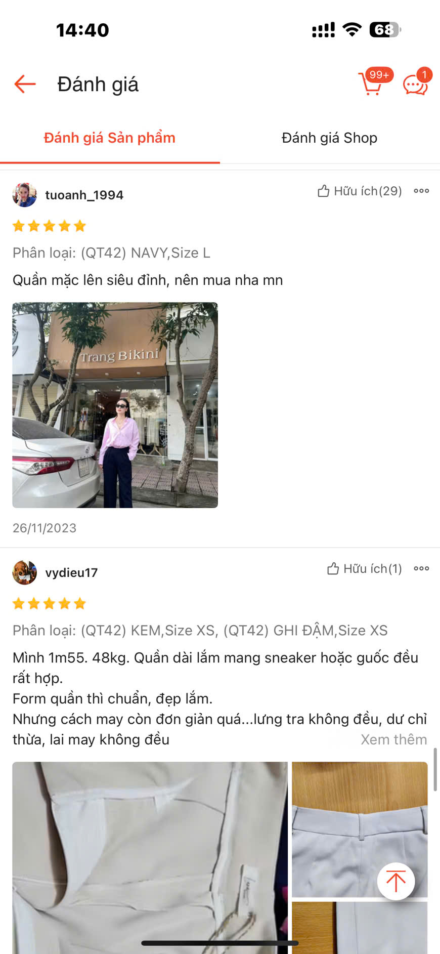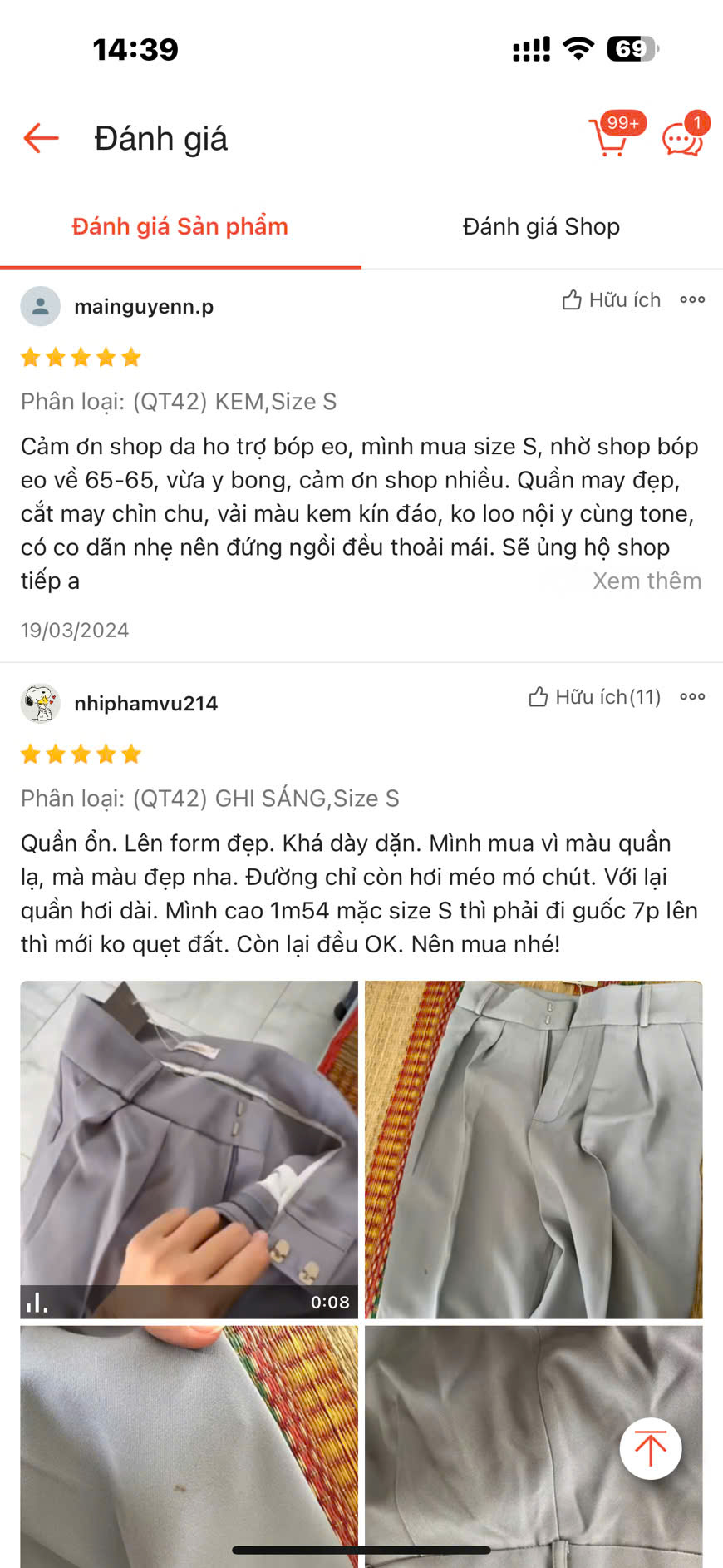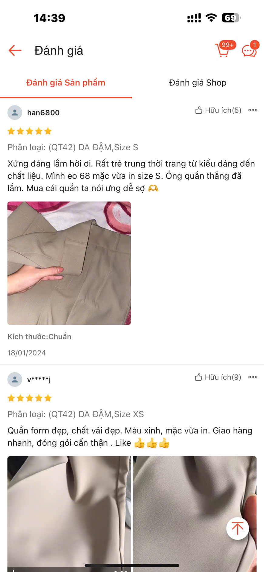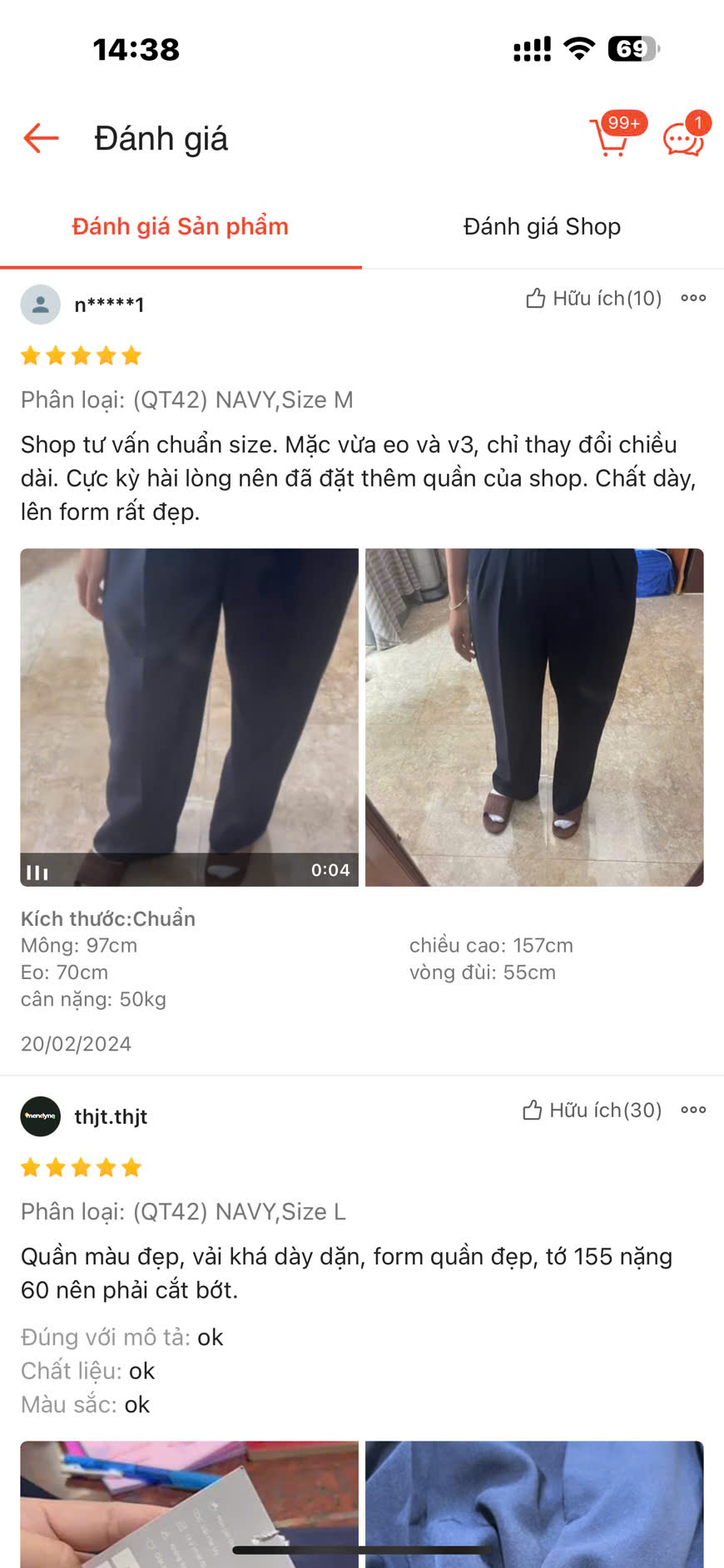 FEEDBACK CỦA KHÁCH ĐÃ MUA QUẦN QT42: