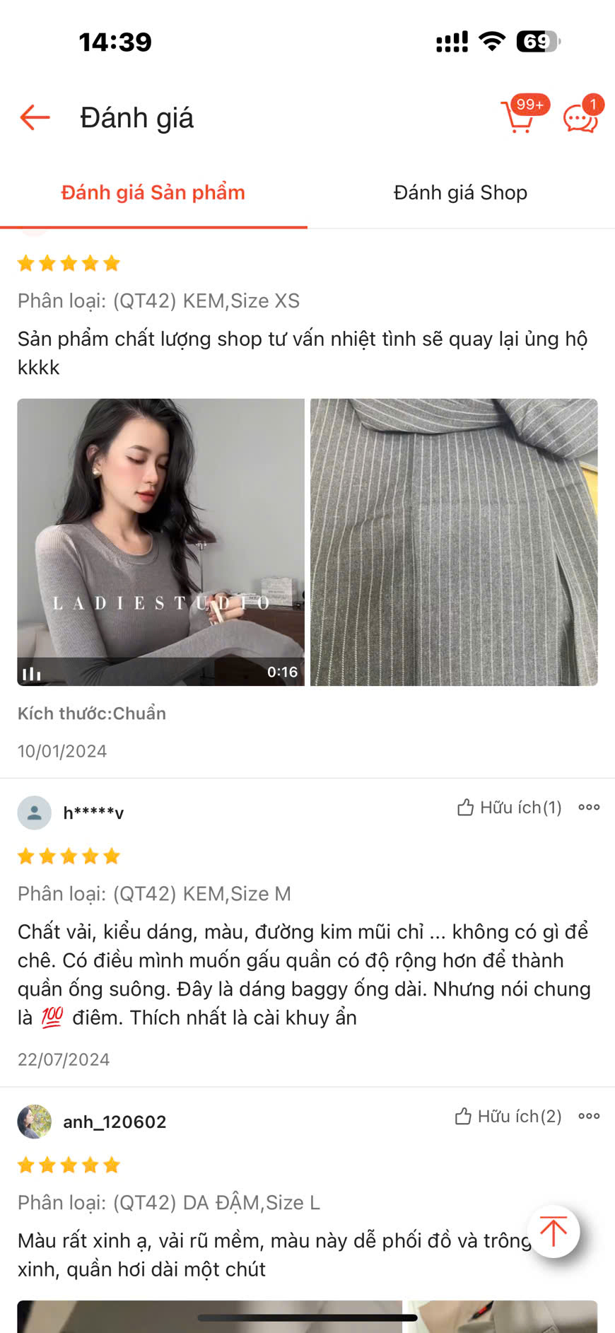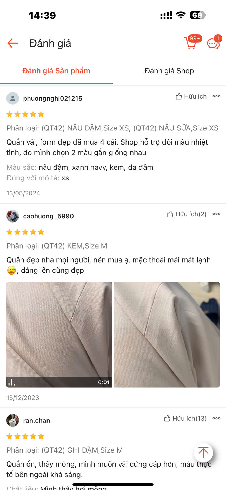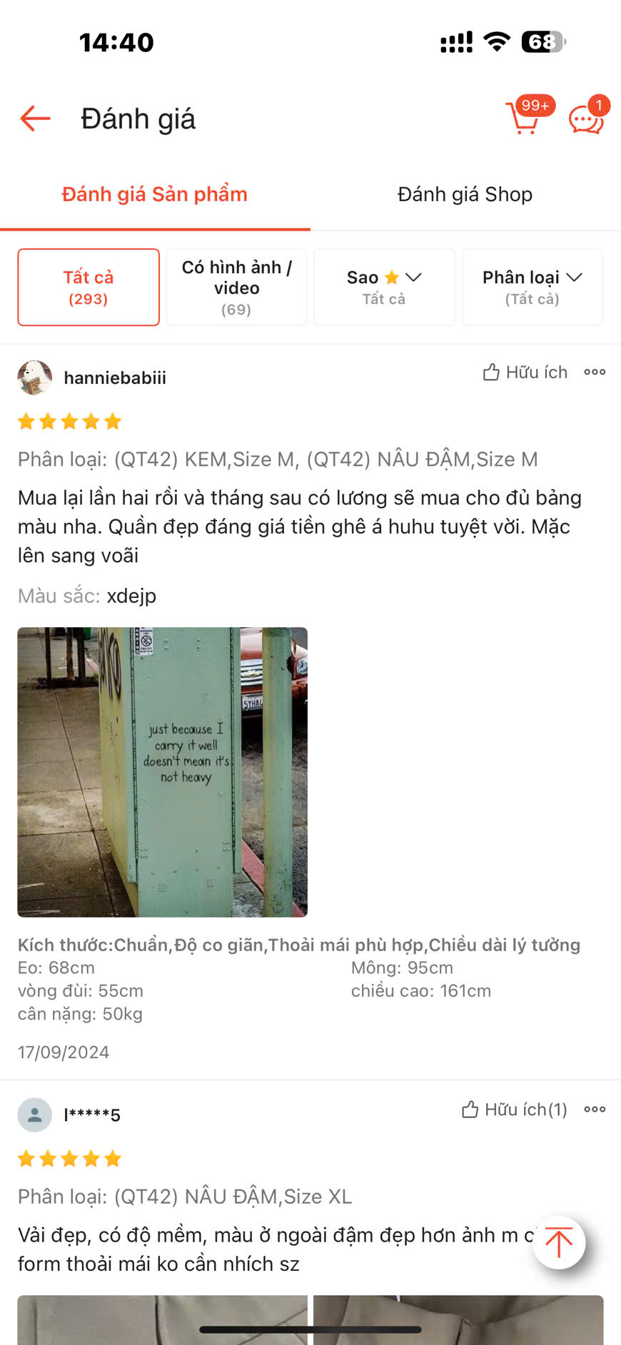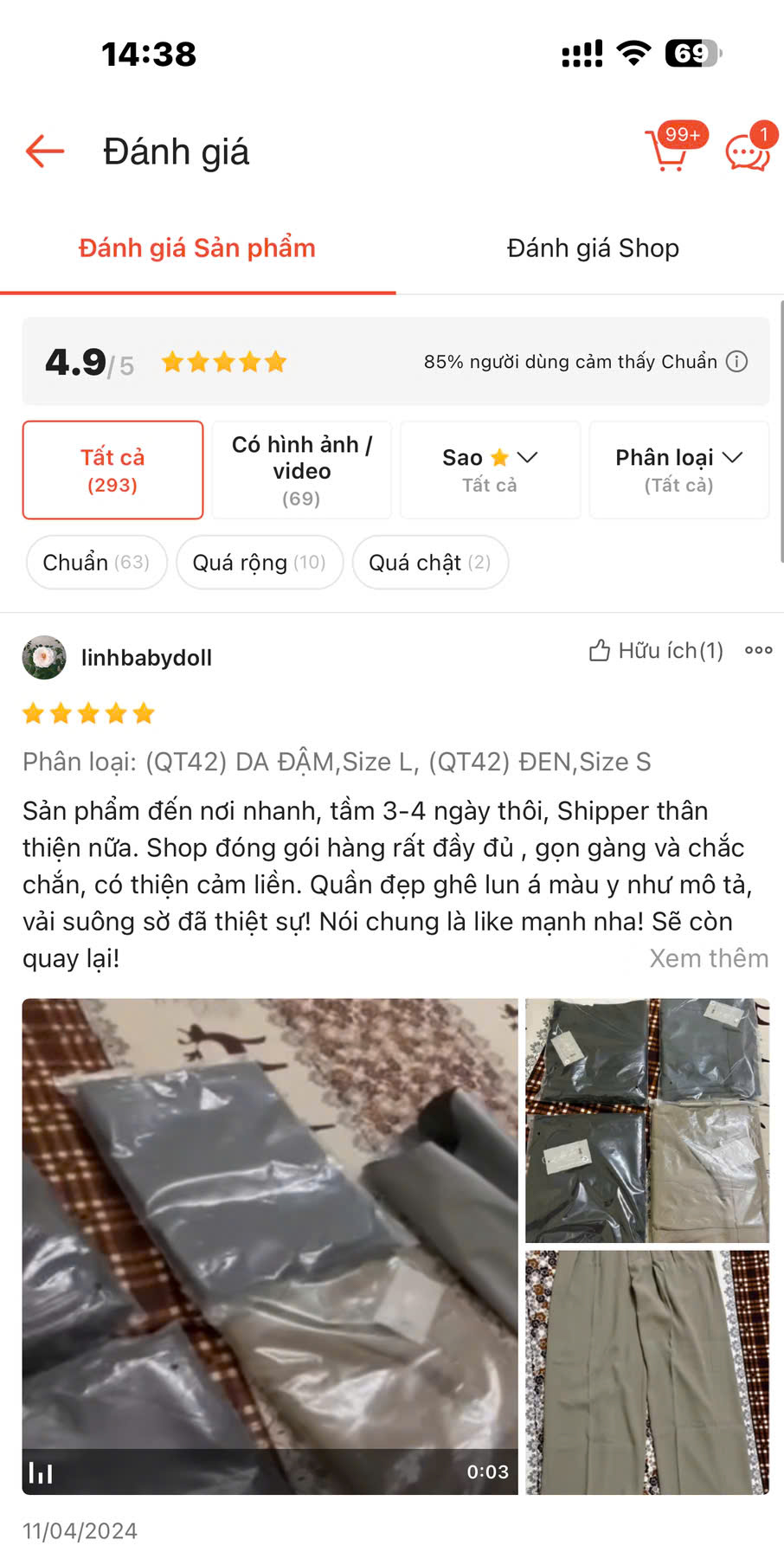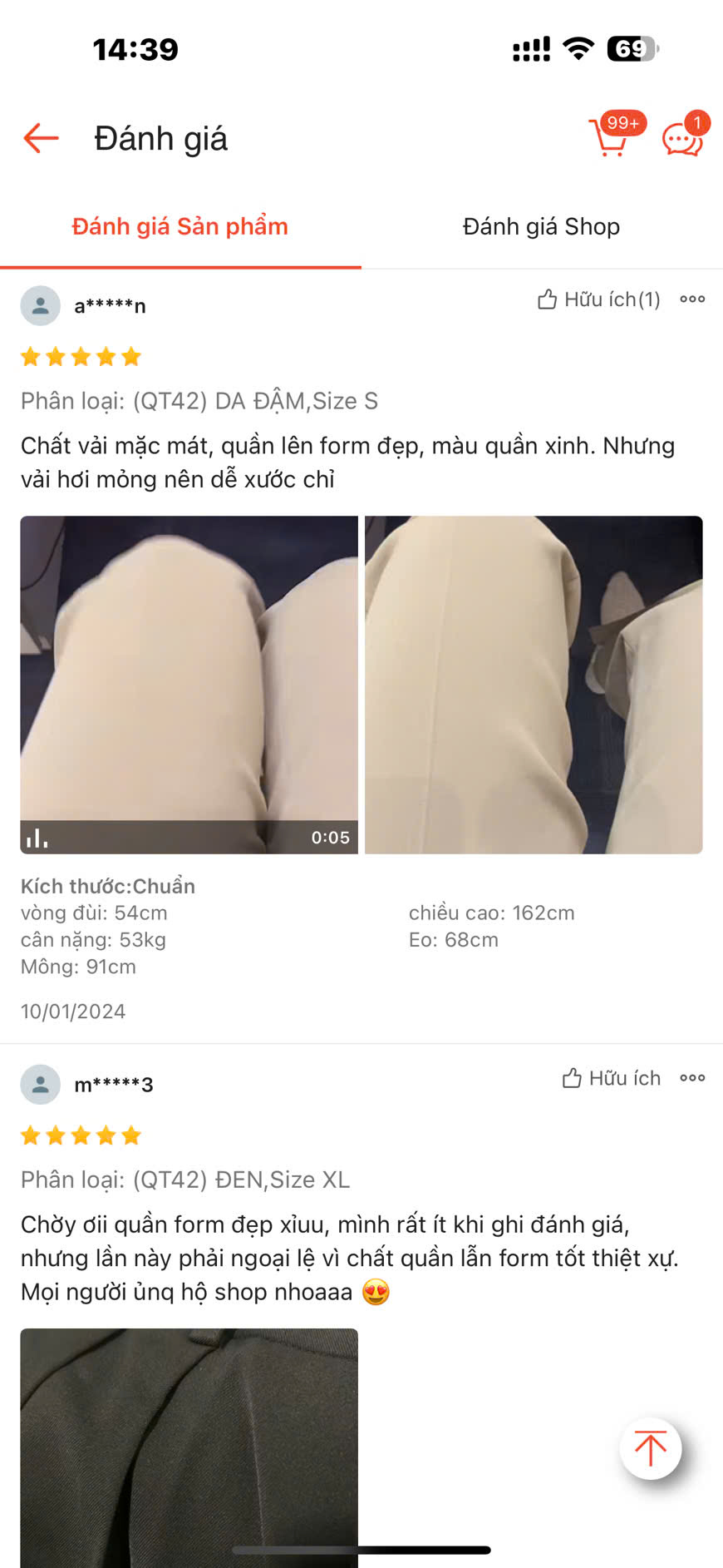 FEEDBACK CỦA KHÁCH ĐÃ MUA QUẦN QT42: