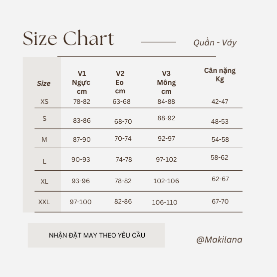 XS: 40-47kg (Vòng 1: 76-80,Vòng 2: 63-68, Vòng 3: 83-88)