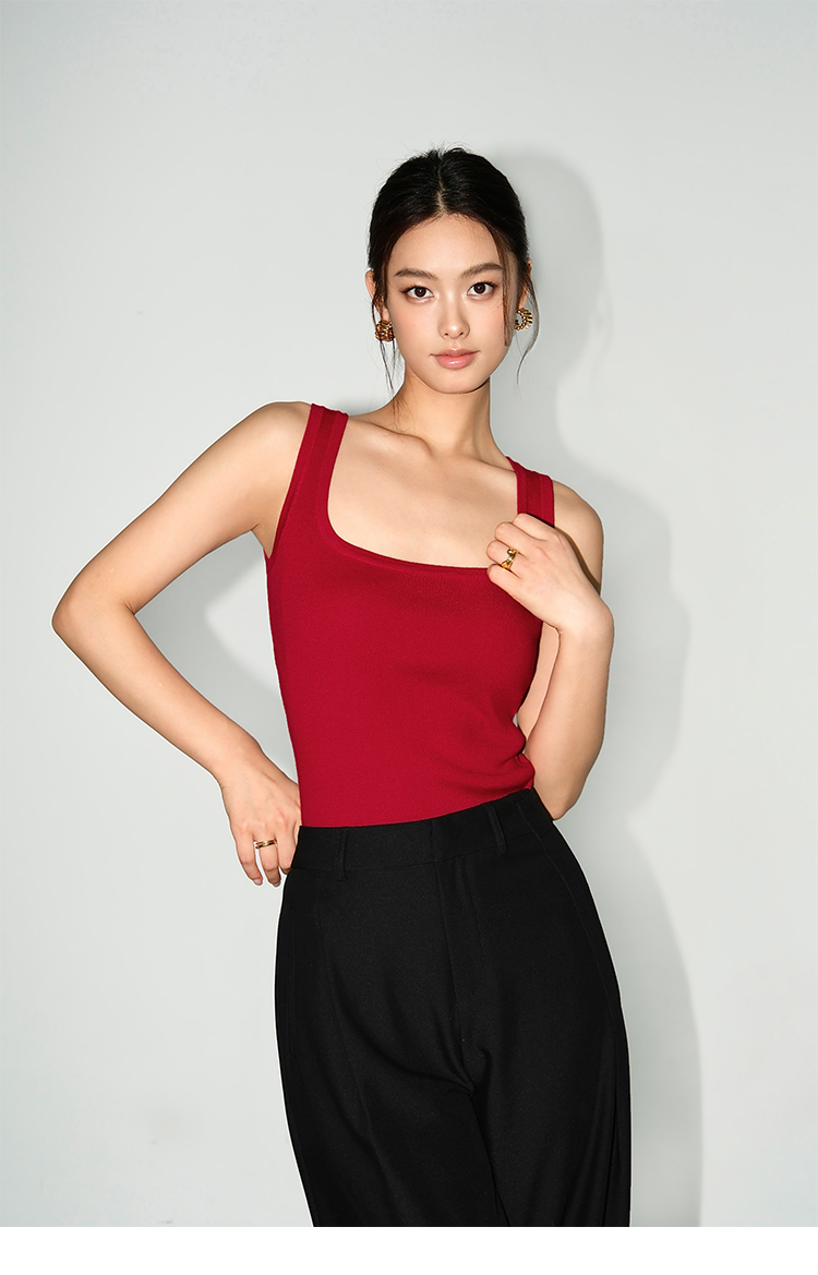 Áo Hai Dây Nữ Cổ Vuông Dệt Kim MAKILANA HM19756-A – Ôm Dáng, Mặc Ngoài, Mùa Hè 2025